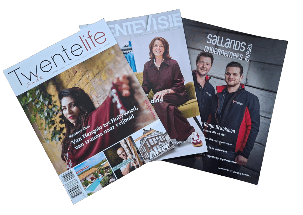 Voor verschillende regionale magazines zoals Sallands Ondernemers Magazine (SOM), Twents Ondernemers Magazine (TOM), Twentevisie en Twentelife schrijf ik regelmatig artikelen en advertorials.